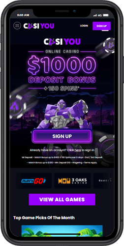 The website is fully optimised for mobile devices, including smartphones and tablets running on iOS, Android, and Windows operating systems. The mobile version of Casiyou Casino maintains the same functionality and design as the desktop version, ensuring a seamless transition between devices. Casiyou Casino features a straightforward and user-friendly design. The main sections of the website are accessible via a toolbar on the left side of the screen, and the homepage prominently displays popular games. The overall design is sleek and modern, with a black background and purple accents.